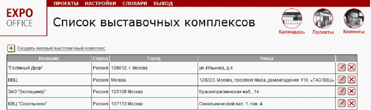 Каждая выставка, обслуживаемая компанией, имеет свойство «выставочный комплекс». Справочник выставочных комплексов представляет собой список выставочных комплексов, в которых проходят выставки.