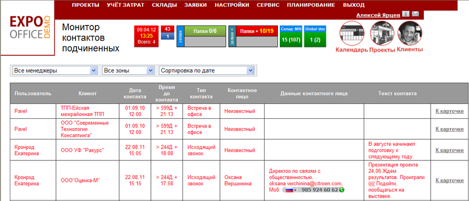 •Просроченные контакты– в данную зону попадают просроченные контакты